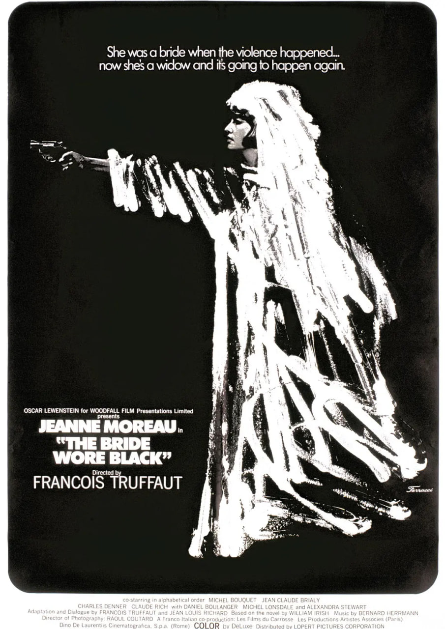 一位新娘(珍.摩露)甫踏出教堂便成寡婦,她整個的愛情理想隨著愛人死亡而幻滅。她儲心積慮,逐一找尋害死丈夫的五個兇手,依次報仇。她的行為完全是基於對愛情的忠貞與執著,為了達成目的,不惜壓抑自己的感情,因